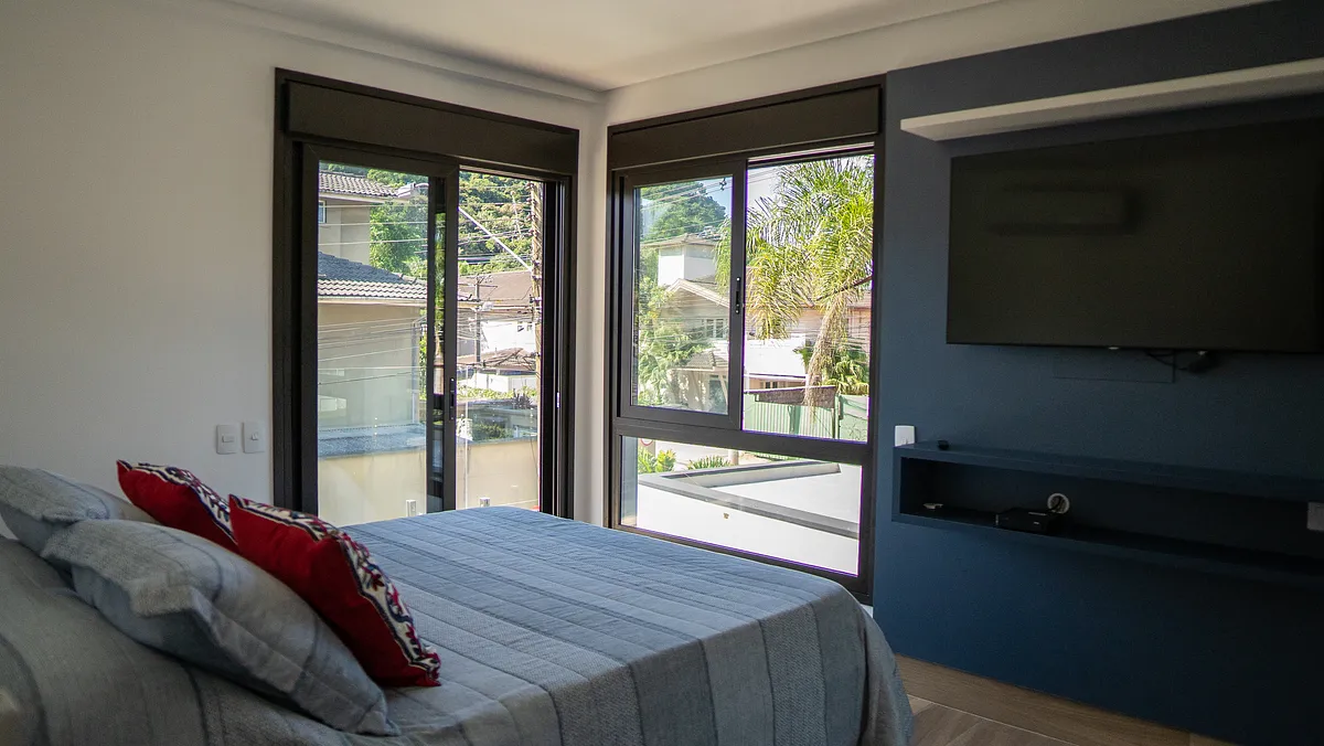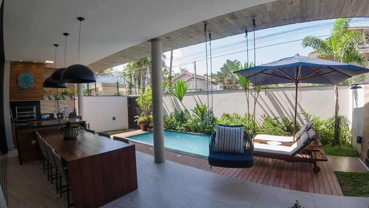 Em condomínio fechado, a casa é ampla com ambientes integrados: no primeiro andar, temos sala de TV, cozinha e varanda gourmet com churrasqueira e piscina. No segundo andar, 4 suítes. Por último, em nosso rooftop, temos um espaço de TV e escritório integrado com área externa de convivência e jacuzzi.