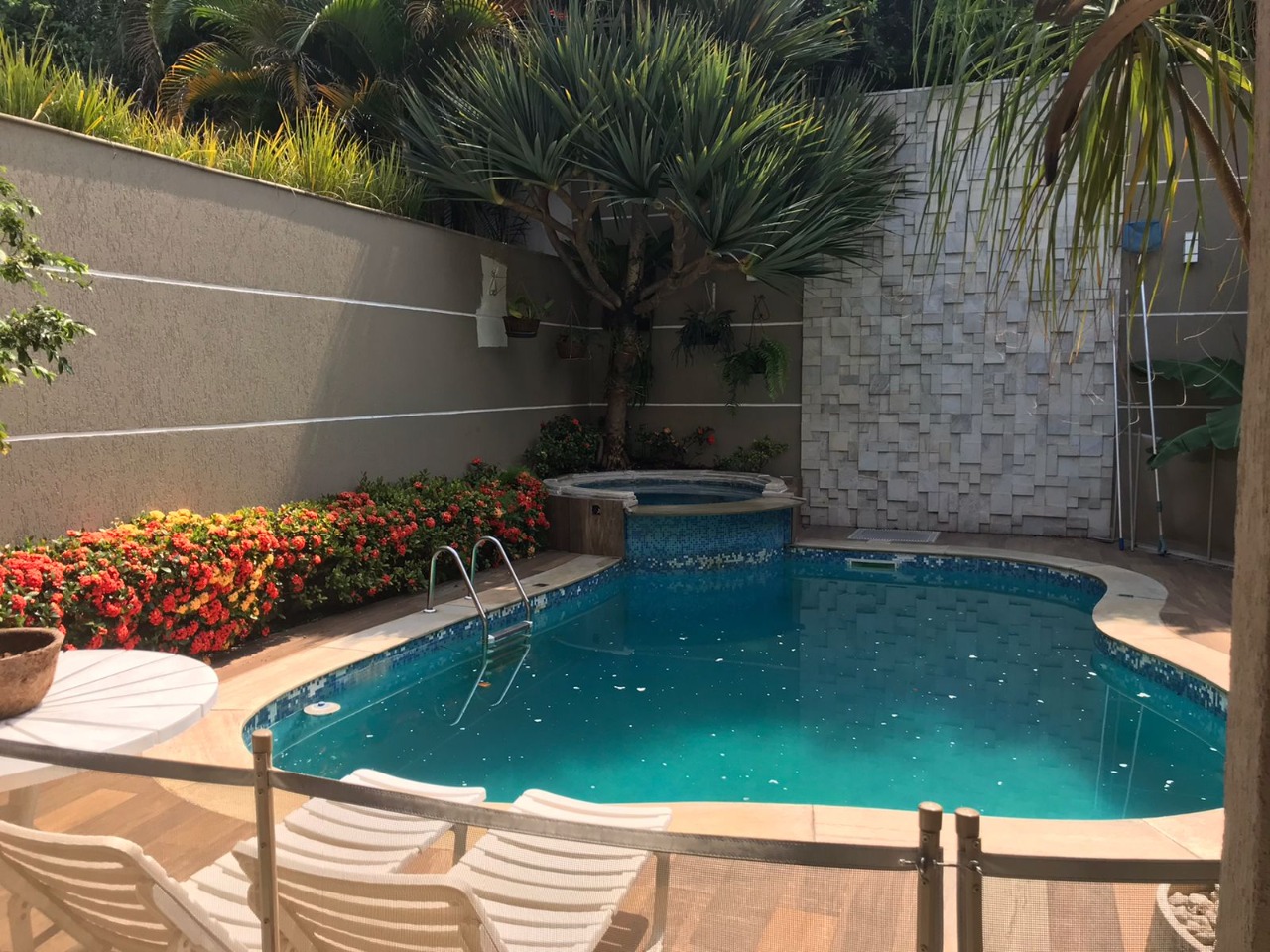 Pé direito alto, cozinha ampla e iluminada, piscina com jacuzzi, jardim e cômodos amplos e com bastante recuo, ideal para filmagens e fotos publicitárias.