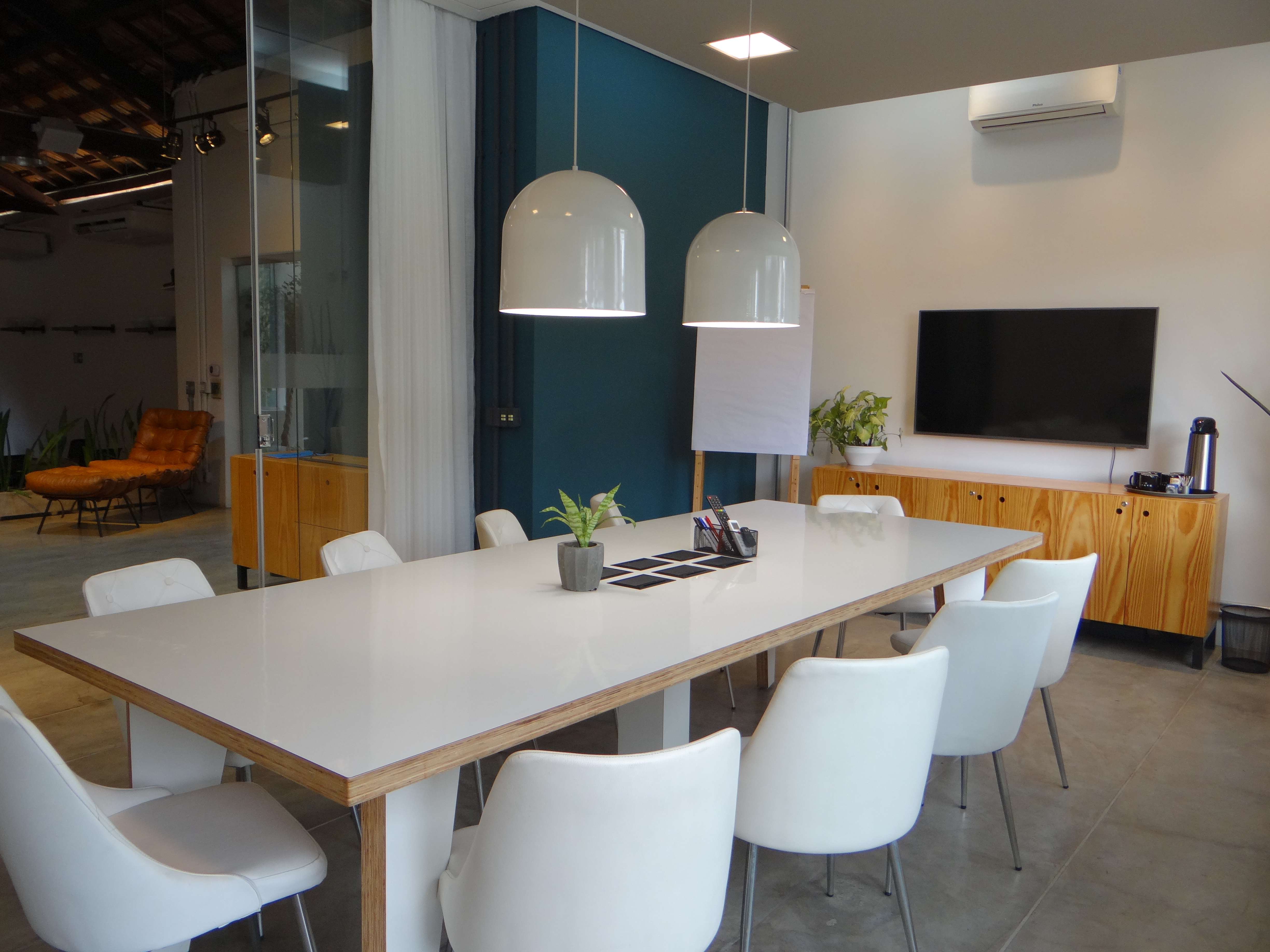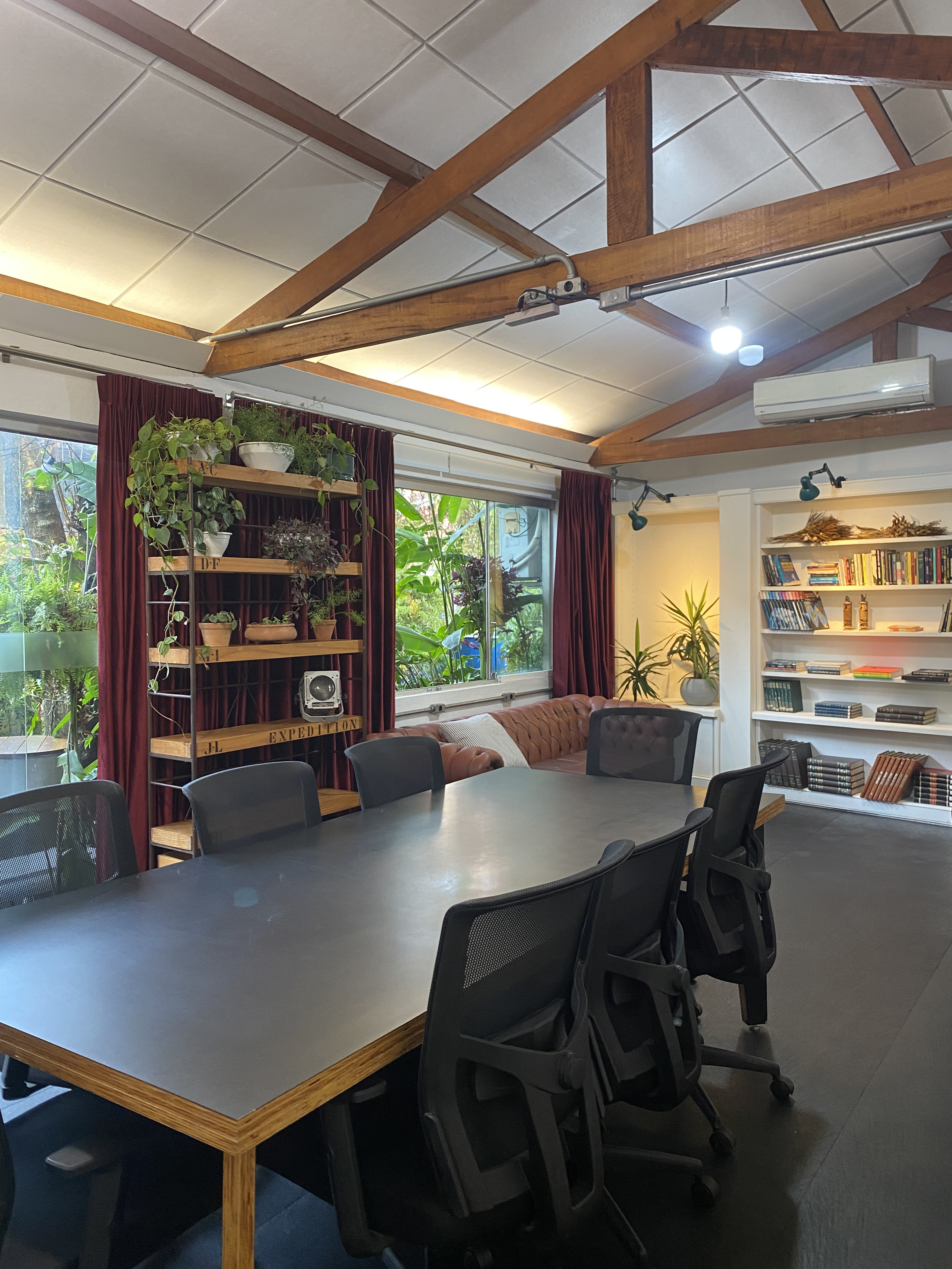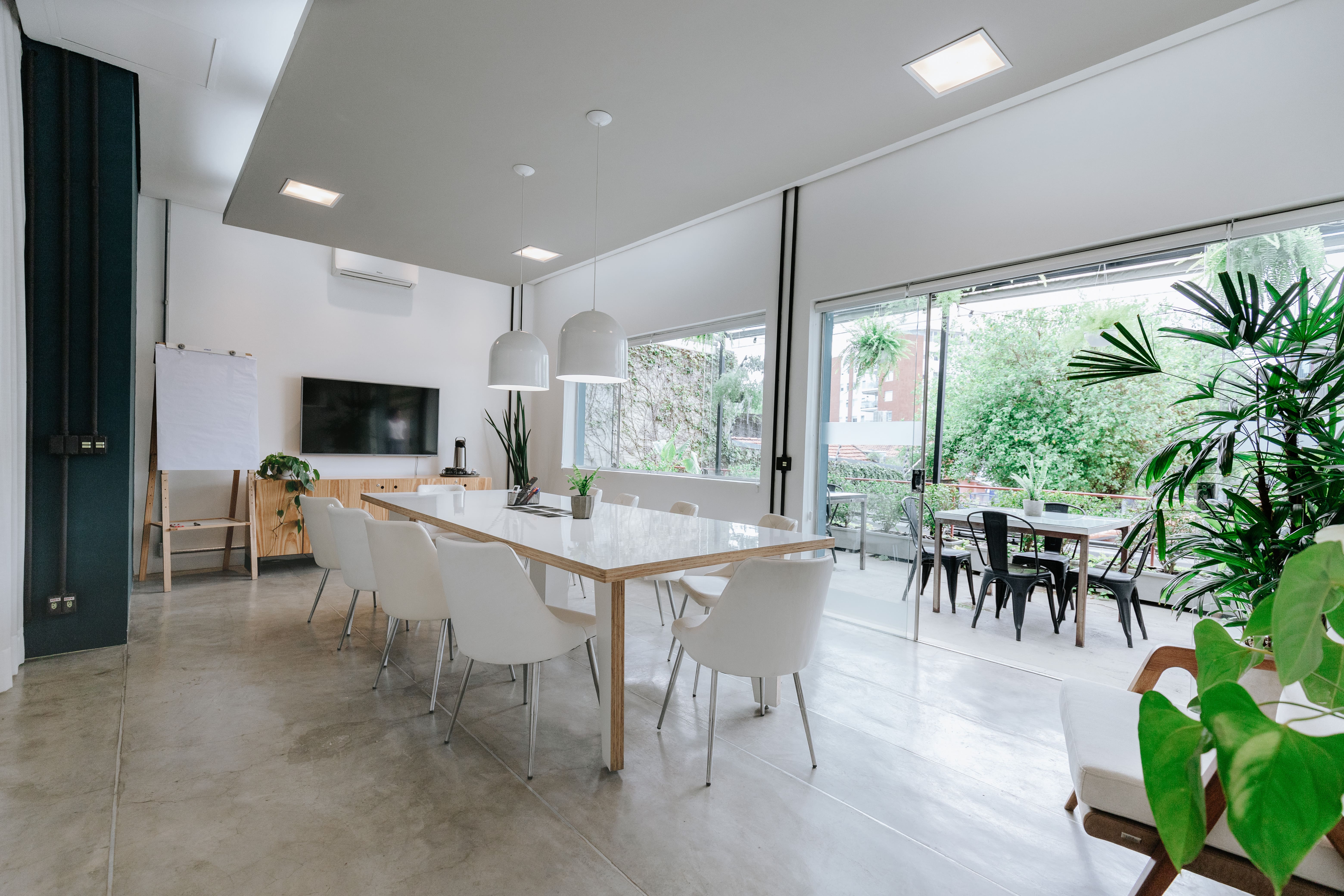 - Sala de reunião para até 10 pessoas com varanda delícia, vista ampla e jardim suspenso;