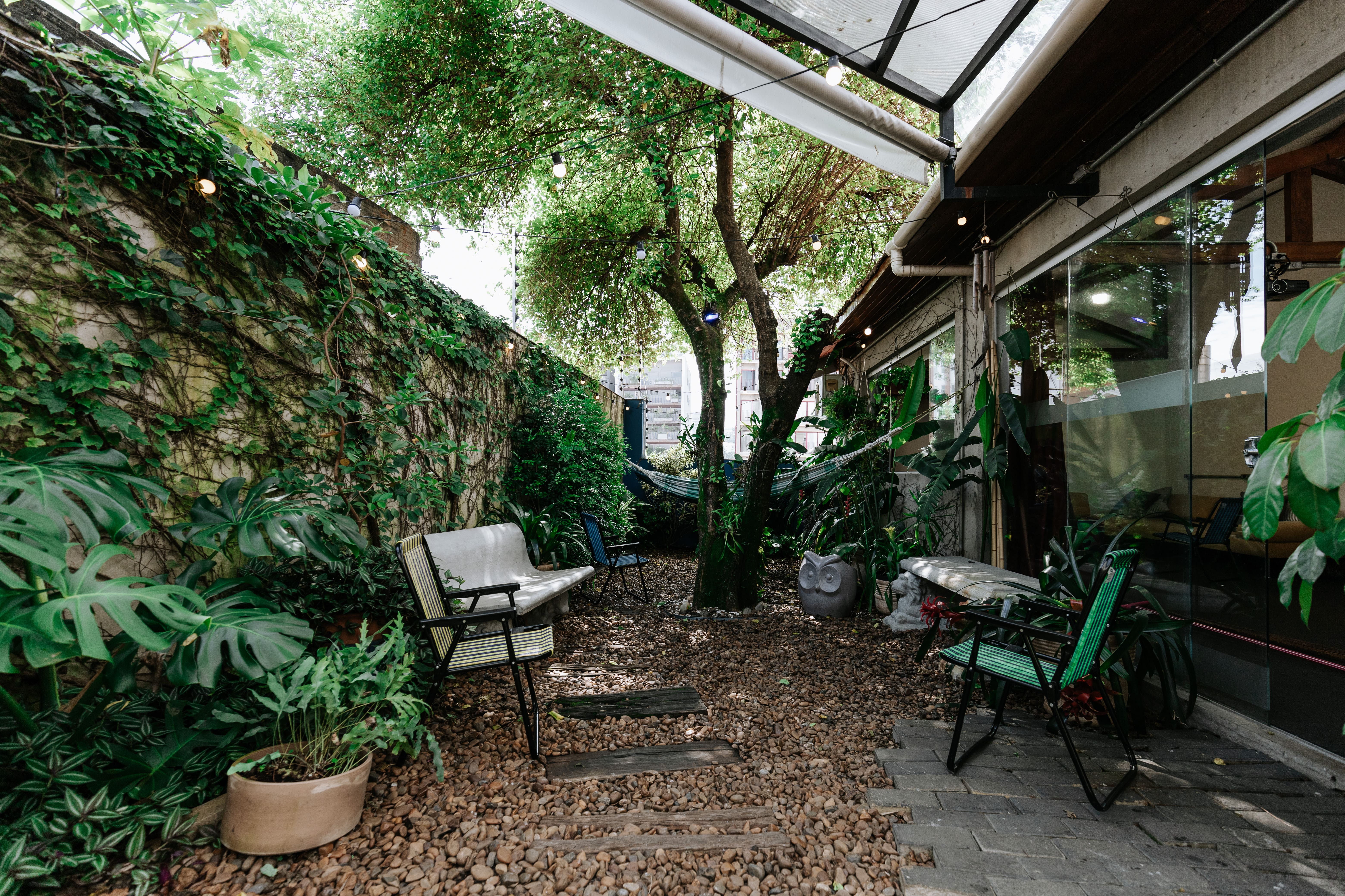 - Jardim externo com rede e bancos para dar aquela diminuída no estresse de cada dia;