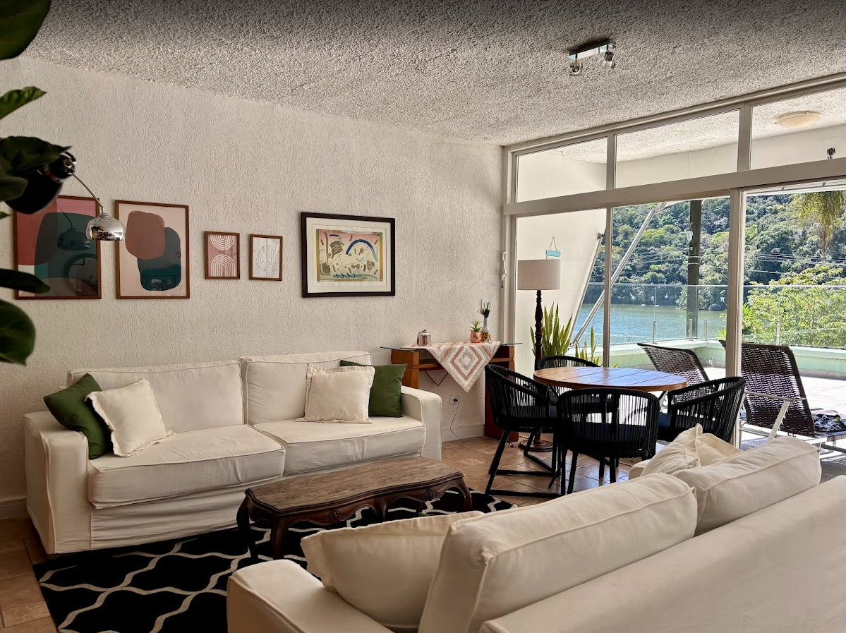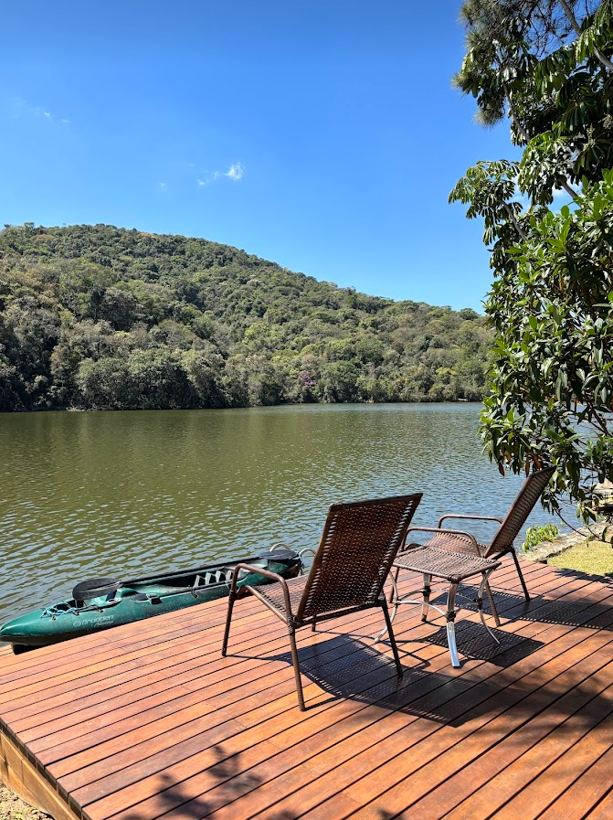 Casa de campo com decoração charmosa e totalmente equipada, localizada em condomínio rodeado pela natureza em Atibaia. Amplo terraço de frente para um lago maravilhoso. A casa possui deck de madeira privativo para acesso ao lago, com caiaque e prancha de stand up paddle disponíveis. Duas vagas de garagem, mais vagas na rua. Possui área nos fundos com churrasqueira e forno de pizza. Salas de estar, sala de jantar e cozinha com vista para o lago. Sala de TV com lareira e confortável sofá em L. O local é ideal para locações que buscam paisagens naturais e muito verde.