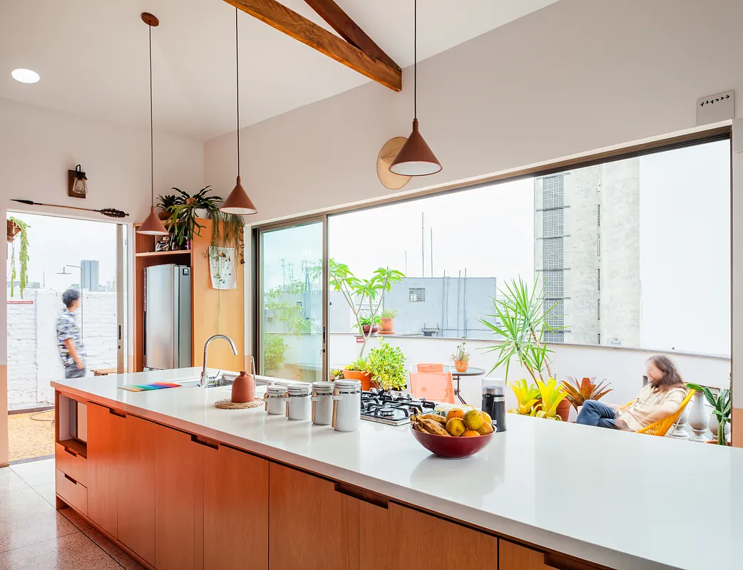 É uma verdadeira caixa de luz, com janelas por todo lado, iluminação zenital no teto( similar a clarabóias). O sol nasce em uma das varandas, durante o dia o sol atravessa a parte de cima e frente do apartamento (dependendo da estação) e o pôr do sol acontece na outra varanda. Ou seja, quando há sol é luz natural o dia todo. As telhas são sanduíche que são antitérmicas e por ser na cobertura, ventila muito. Tenho ar condicionado no lado íntimo.