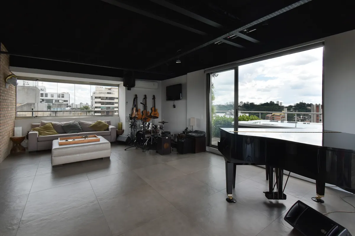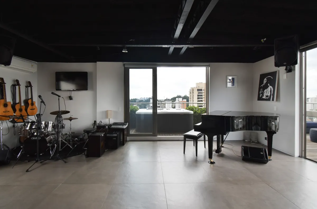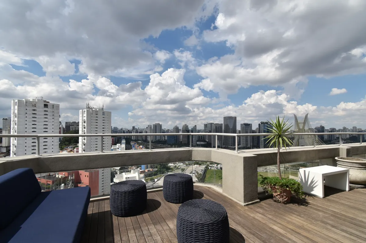 Apartamento duplex com vista para um dos cartões postais da cidade, Ponte Estaiada. O segundo piso possui varanda com vista deslumbrante, cozinha com bancada americana completa e equipada, sala com piano, bateria e equipamentos de som!