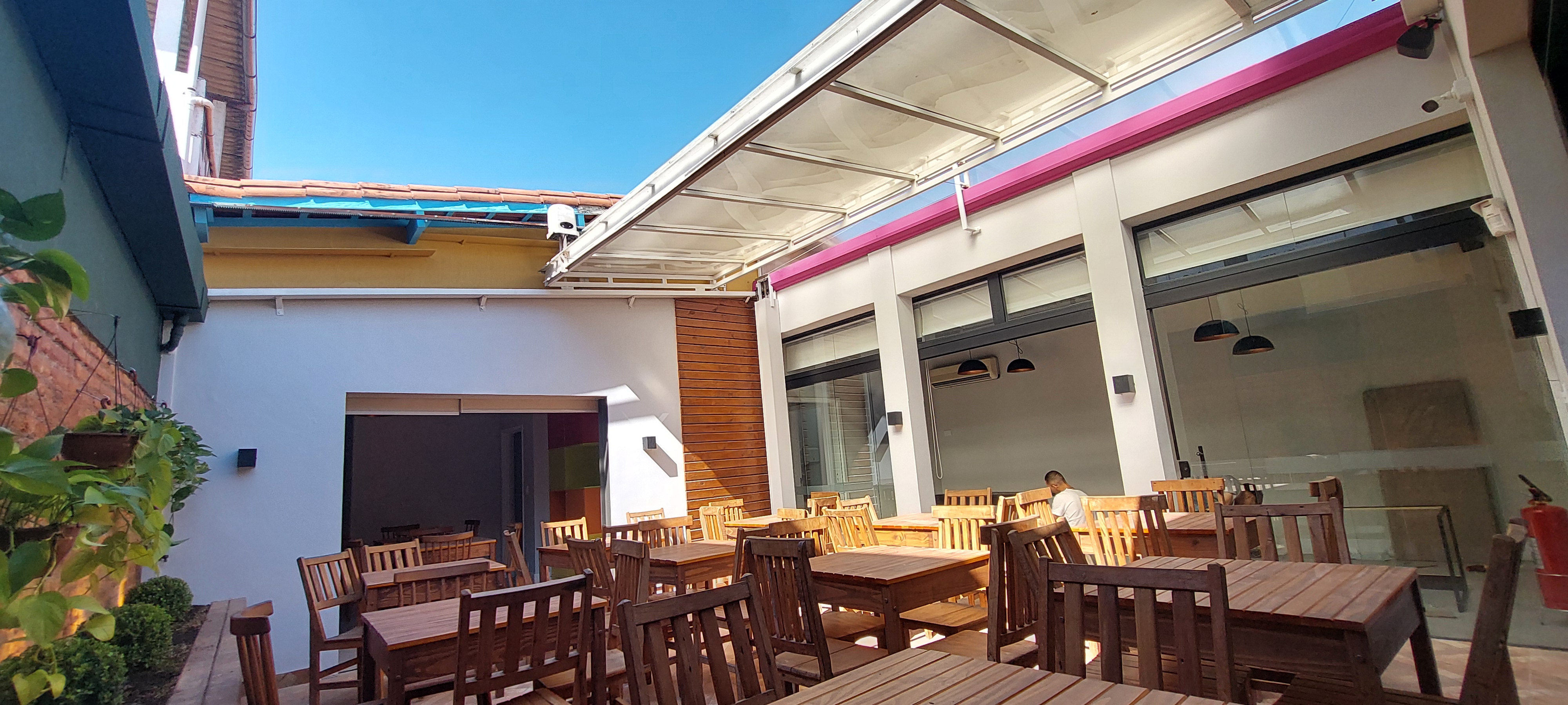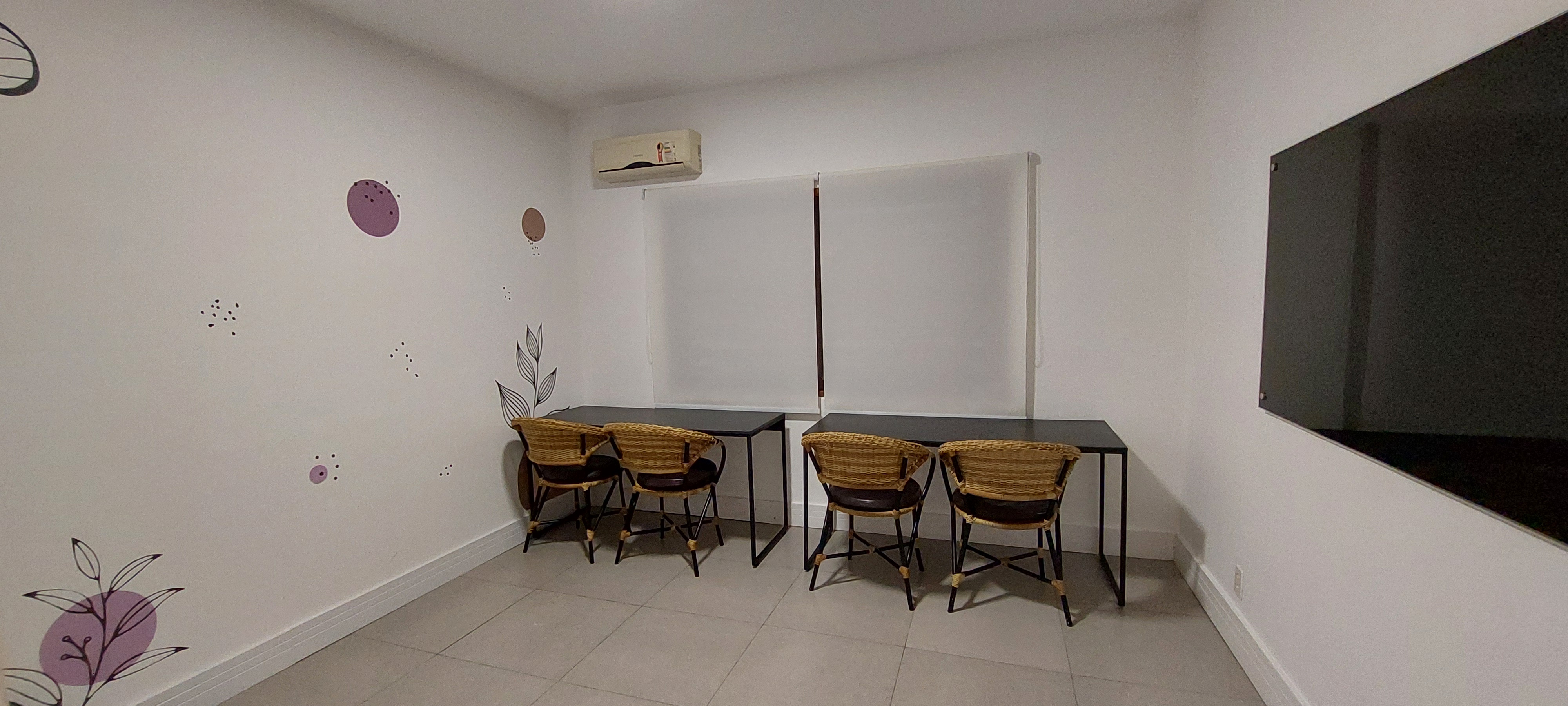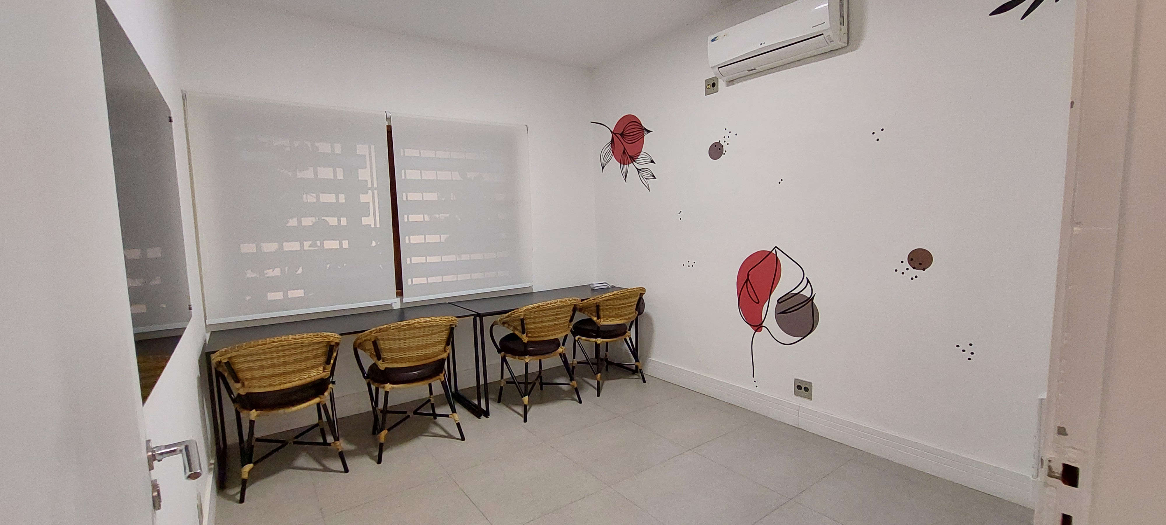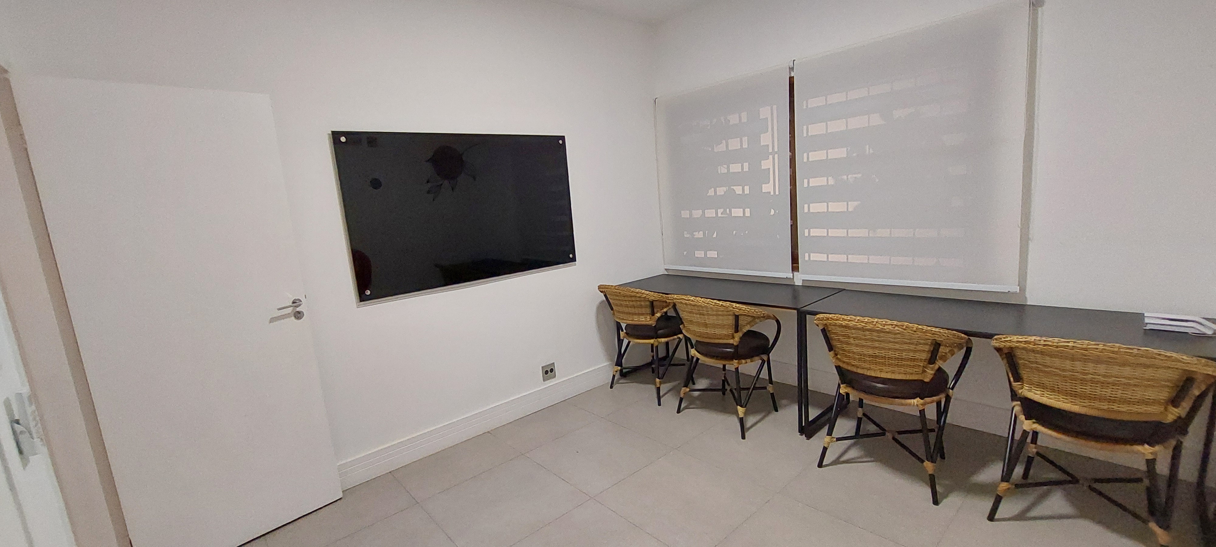 Jardim de Inverno super charmoso, com teto retrátil para as refeições, ou coquetéis, dinâmicas em grupos e etc. Temos também 2 Salas disponíveis com mobília e quadro de anotações, que podem virar a sua sala de Reunião, do Cliente, de Produção, enfim, use como for necessário.