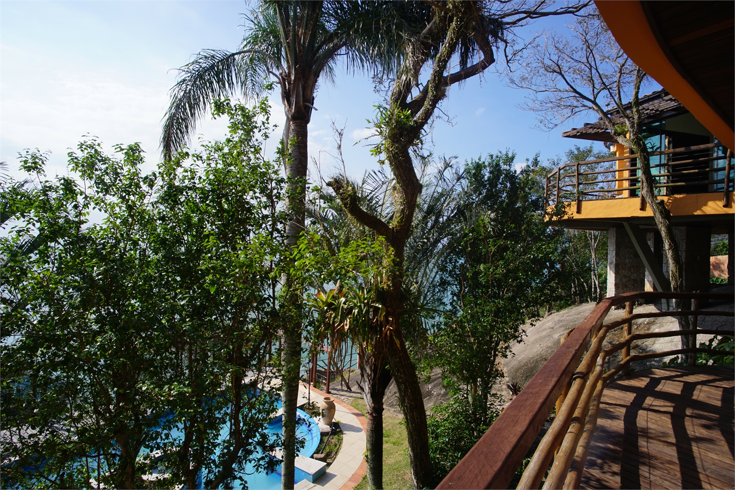 Com vista panorâmica do mar desde a área da piscina até o terceiro andar da casa.