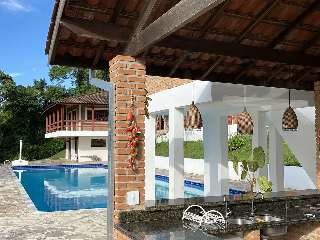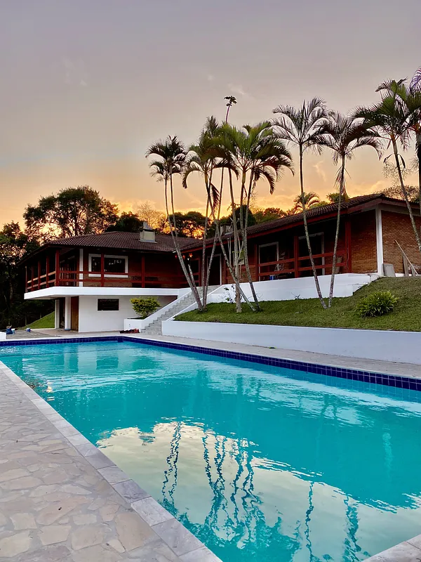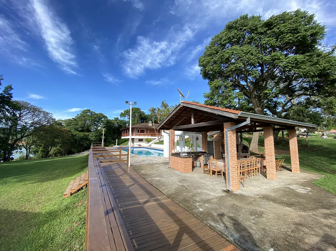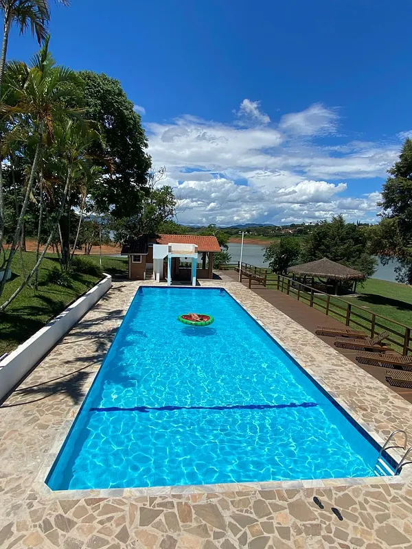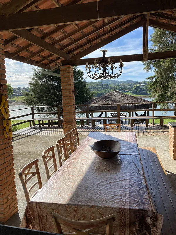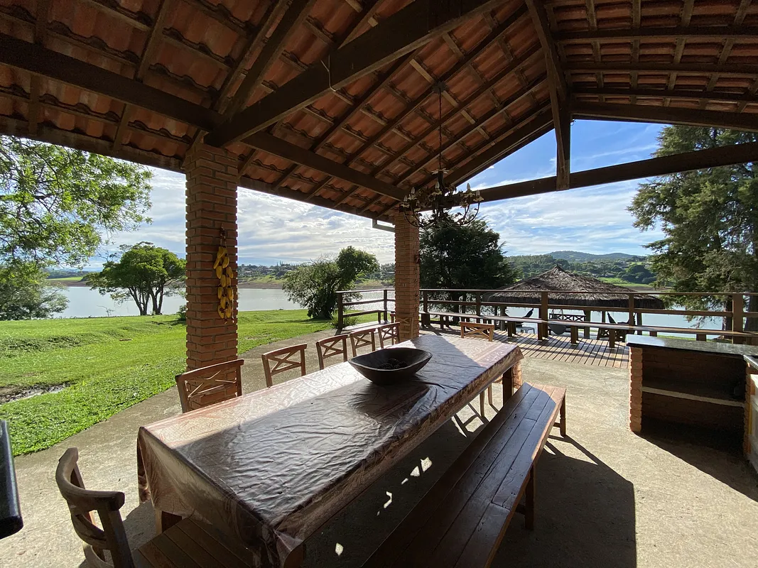 Na beira da represa de Jaguari rodeado por água por todos os lados com muita área verde e uma Mega casa com piscina semi olimpica com plataforma de salto, 9 quartos, 8 banheiros, 2 churrasqueiras, forno a lenha, cozinha toda equipada, salao de jogos com mesa de bilhar, pebolim e ping pong, uma energia e vista panorâmica maravilhosaaaaa.