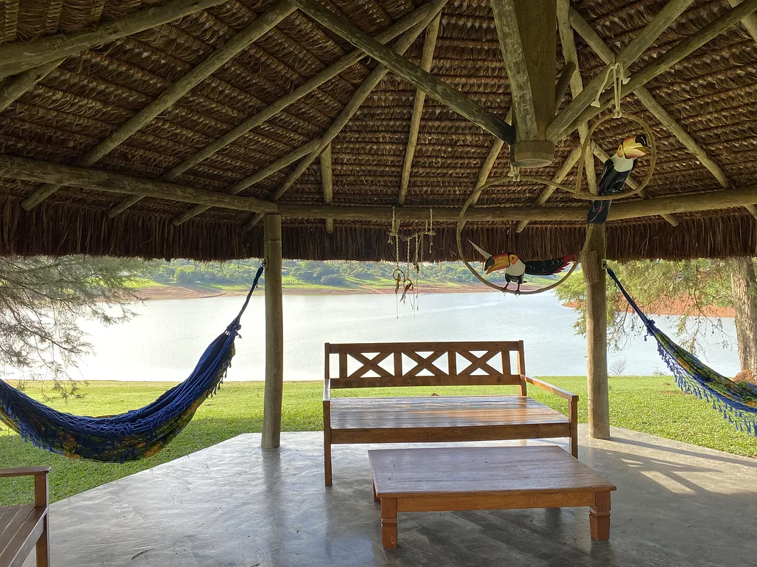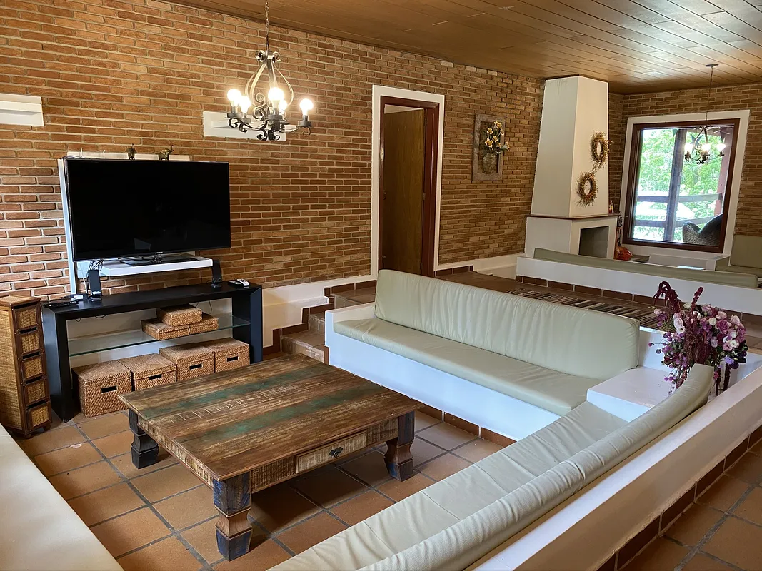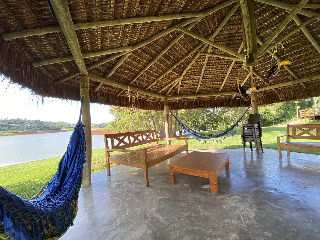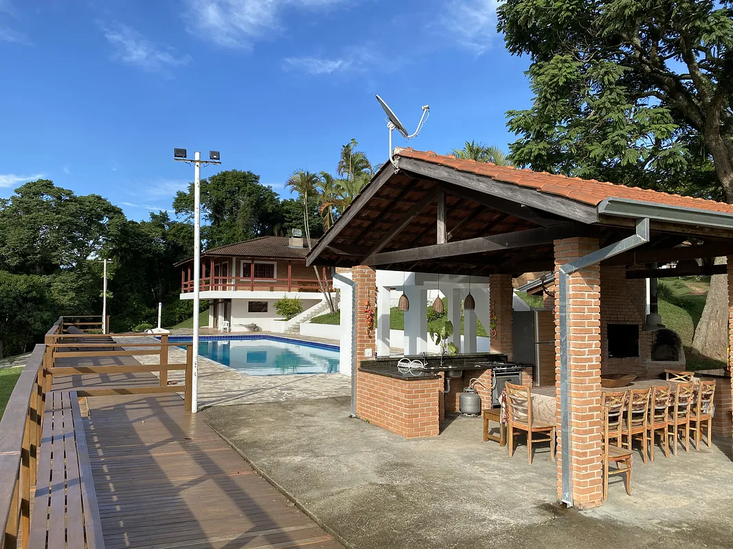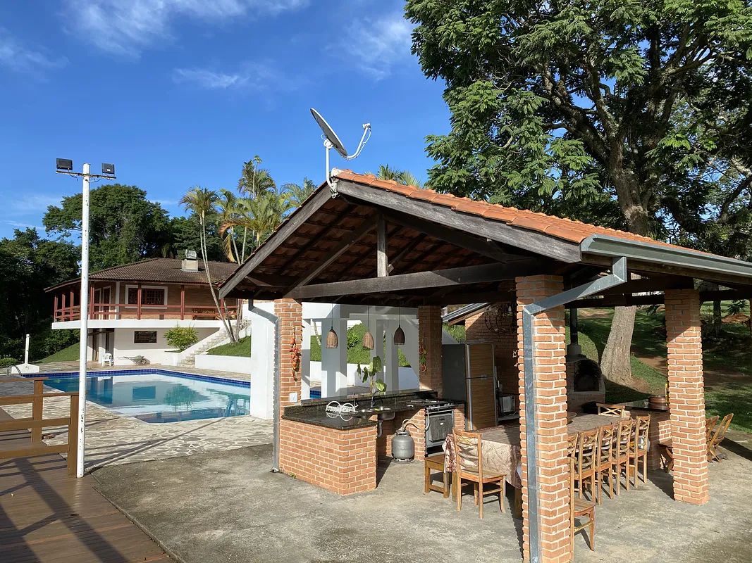 Na beira da represa de Jaguari rodeado por água por todos os lados com muita área verde e uma Mega casa com piscina semi olimpica com plataforma de salto, 9 quartos, 8 banheiros, 2 churrasqueiras, forno a lenha, cozinha toda equipada, salao de jogos com mesa de bilhar, pebolim e ping pong, uma energia e vista panorâmica maravilhosaaaaa.