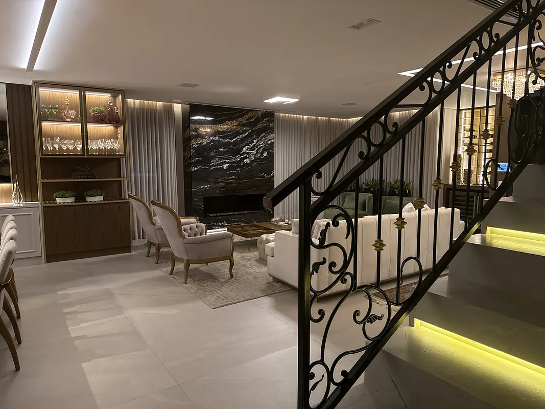 Casa familiar com acabamentos primorosos (papel de parede, marmores) aconchegante, clássico e estiloso.