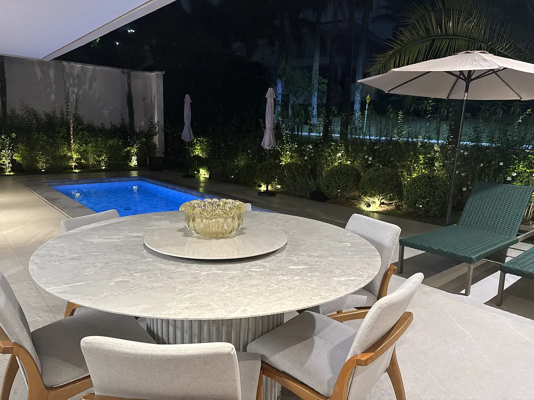 Piscina com aquecimento solar também é iluminada.