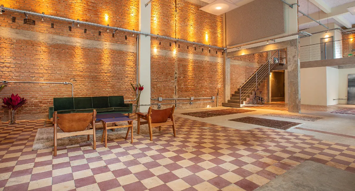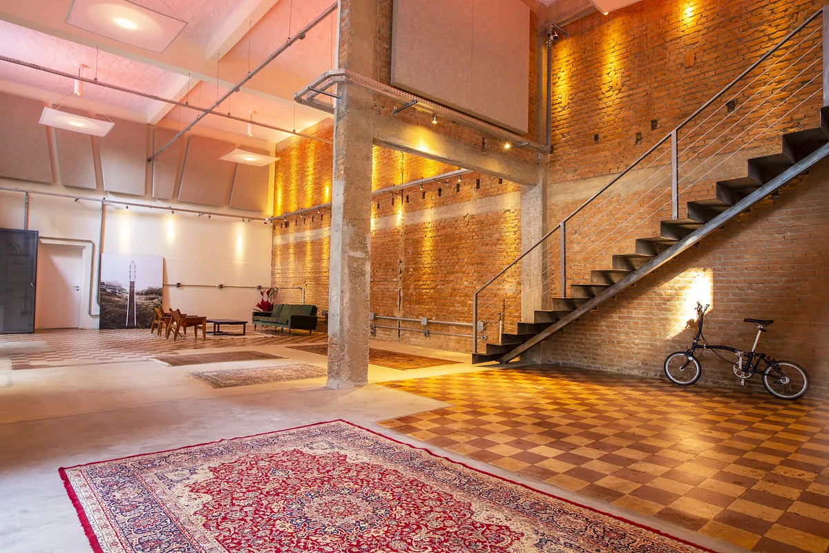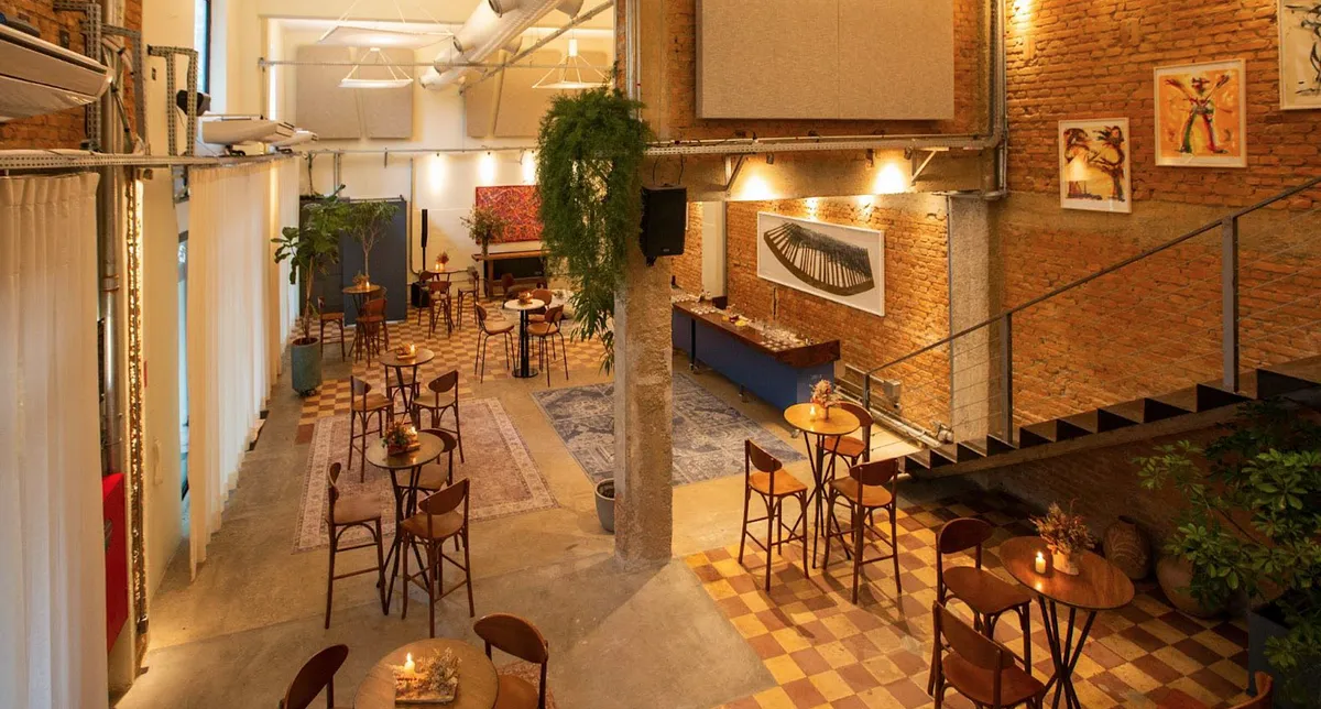 Trata-se de um espaço versátil e modular no coração do bairro de pinheiros com isolamento e revestimento acústico em toda sua estrutura interna e externa, Além disso, o espaço possui um sistema (turbina) que troca o ar de todo o ambiente a cada 4 minutos! Não obstante, possuímos uma cozinha industrial com três sub áreas: cocção, preparo e lavagem. Um camarim com entrada separada do salão principal e um pé direito de 6 metros de altura.