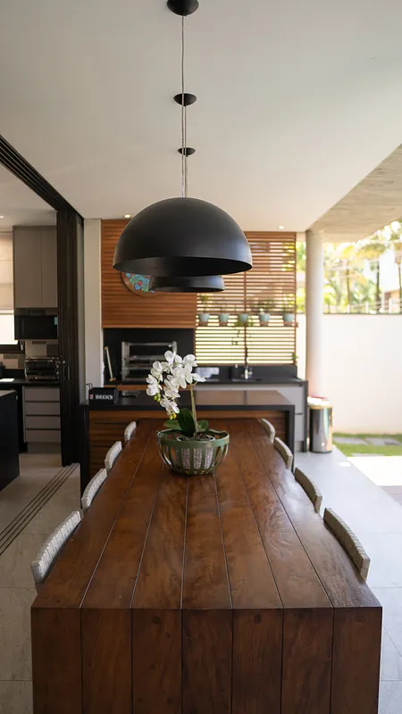 Em condomínio fechado, a casa é ampla com ambientes integrados: no primeiro andar, temos sala de TV, cozinha e varanda gourmet com churrasqueira e piscina. No segundo andar, 4 suítes. Por último, em nosso rooftop, temos um espaço de TV e escritório integrado com área externa de convivência e jacuzzi.