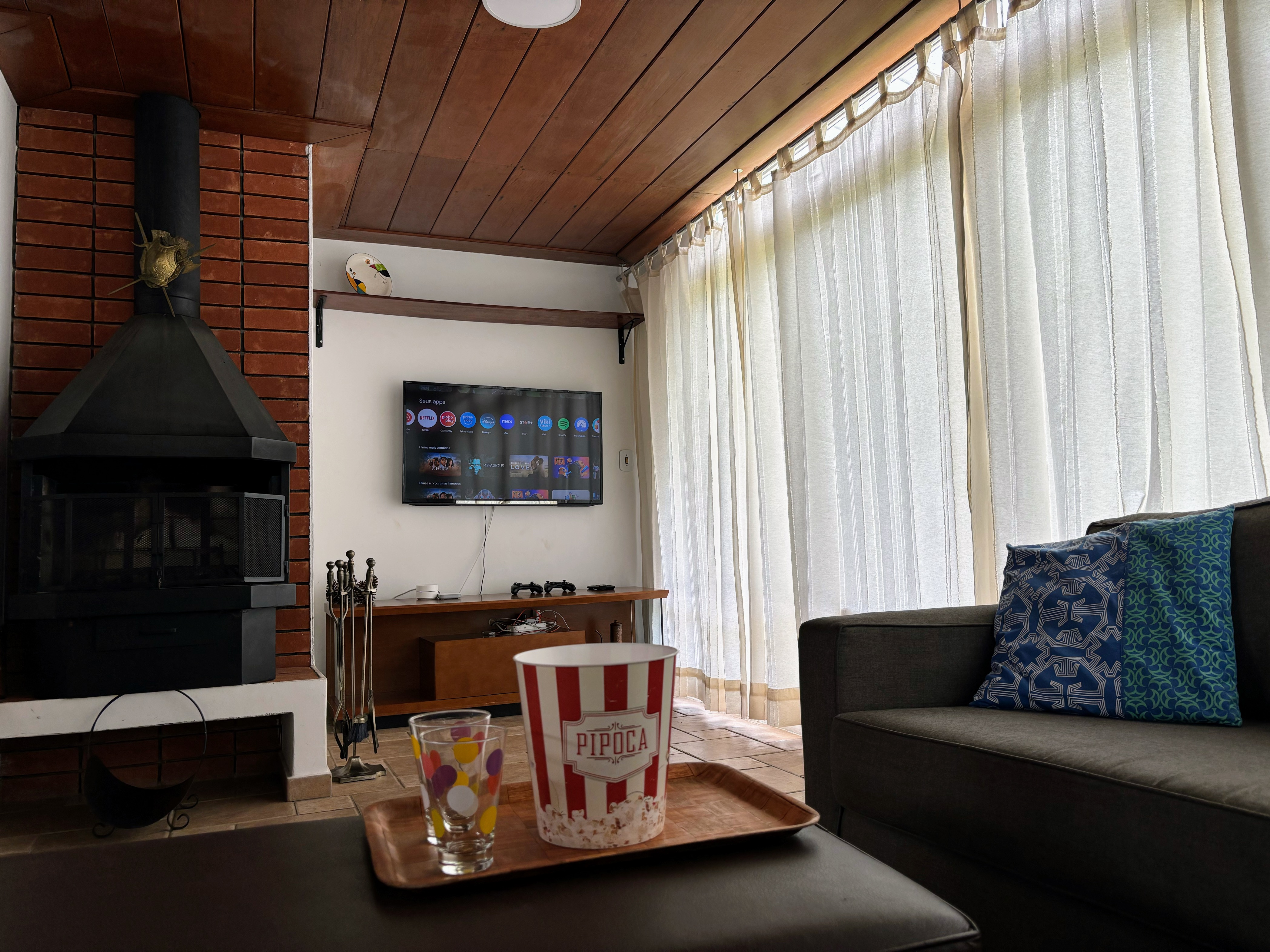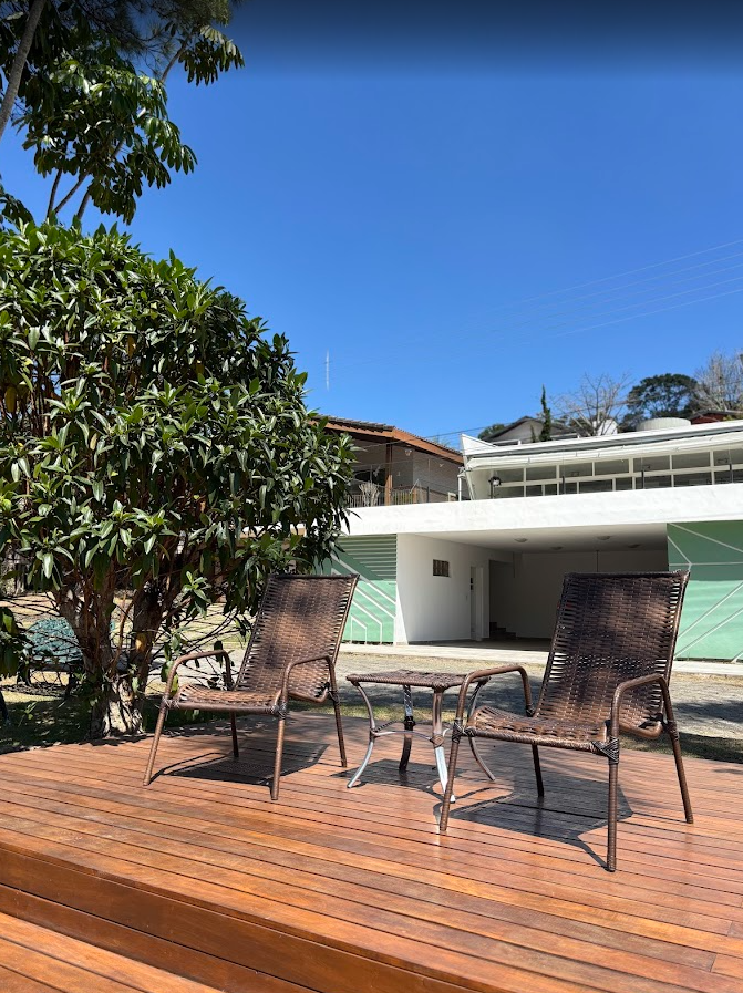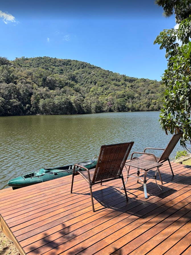Casa de campo com decoração charmosa e totalmente equipada, localizada em condomínio rodeado pela natureza em Atibaia. Amplo terraço de frente para um lago maravilhoso. A casa possui deck de madeira privativo para acesso ao lago, com caiaque e prancha de stand up paddle disponíveis. Duas vagas de garagem, mais vagas na rua. Possui área nos fundos com churrasqueira e forno de pizza. Salas de estar, sala de jantar e cozinha com vista para o lago. Sala de TV com lareira e confortável sofá em L. O local é ideal para locações que buscam paisagens naturais e muito verde.