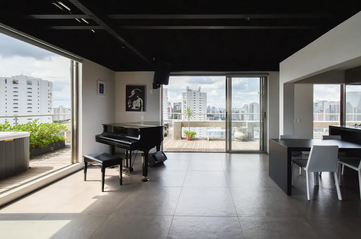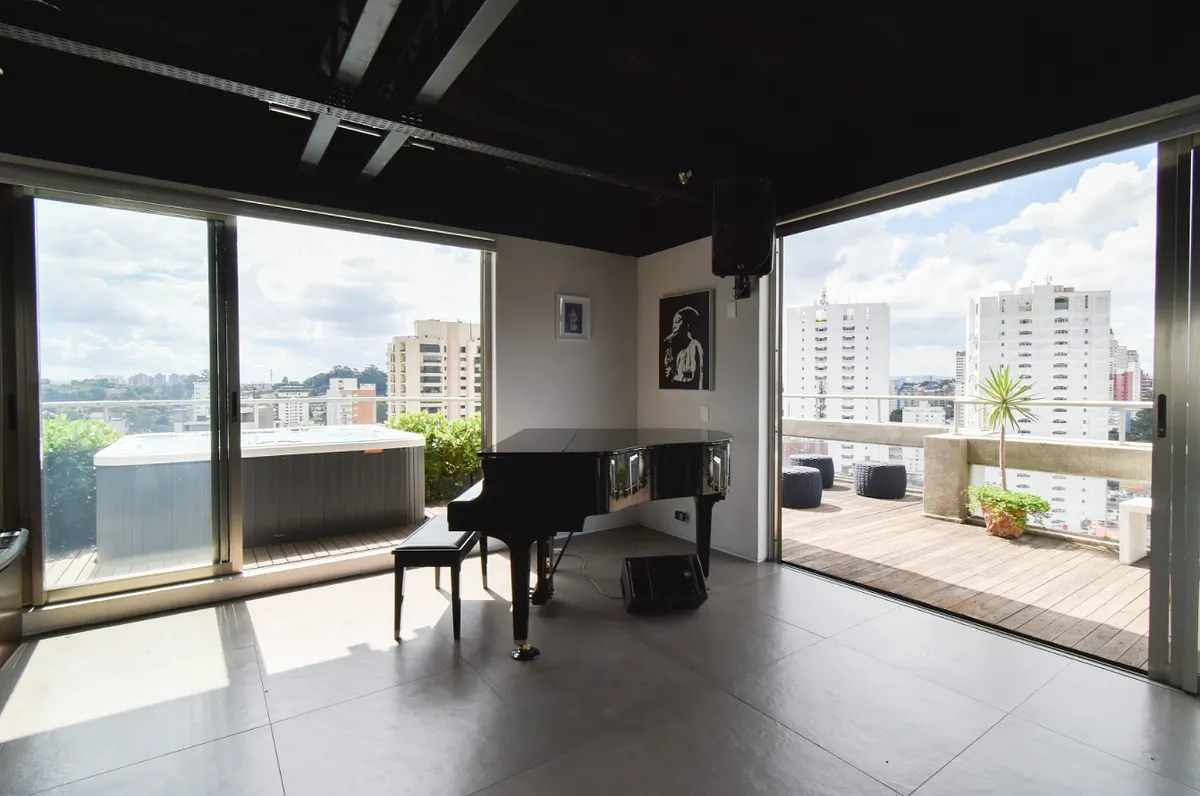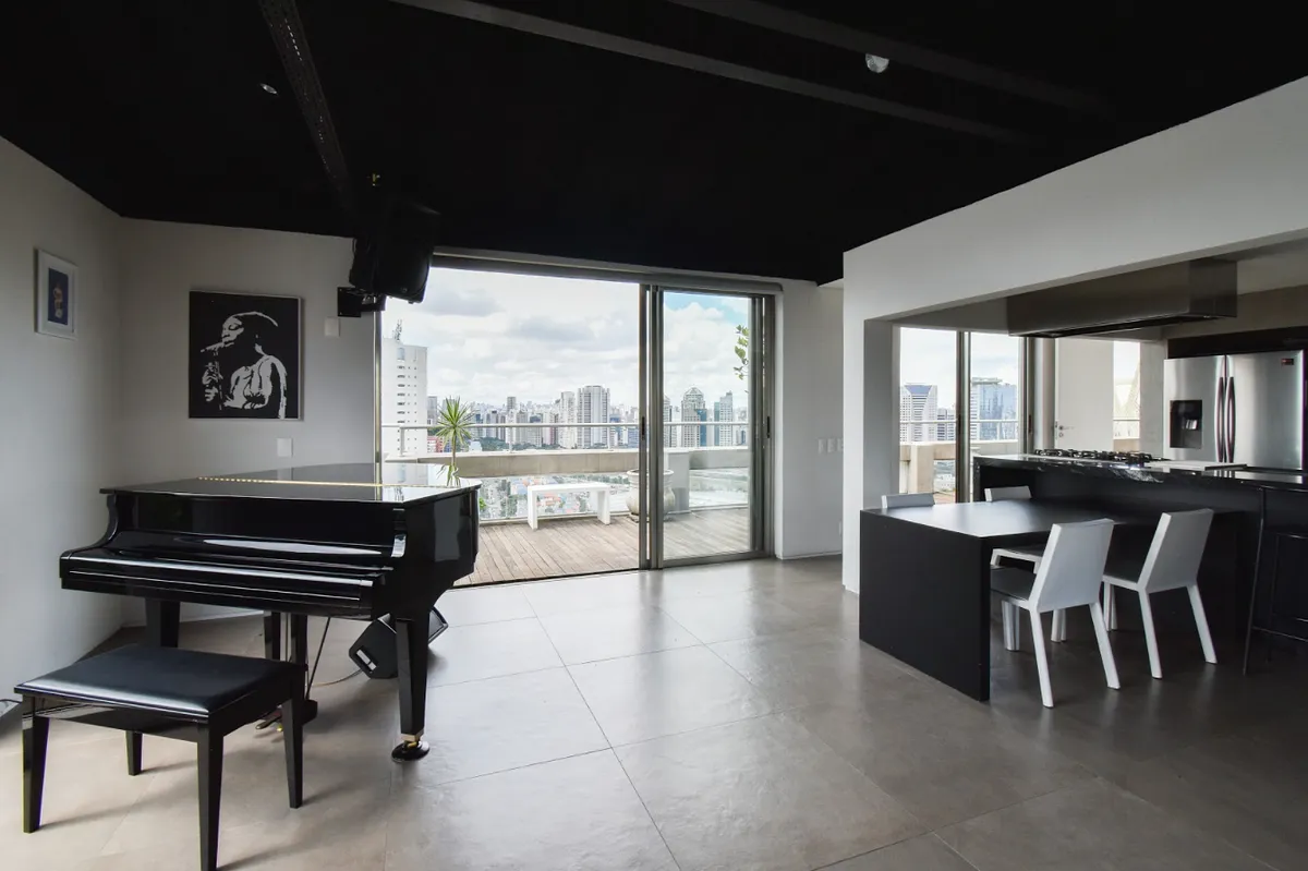 Apartamento duplex com vista para um dos cartões postais da cidade, Ponte Estaiada. O segundo piso possui varanda com vista deslumbrante, cozinha com bancada americana completa e equipada, sala com piano, bateria e equipamentos de som!