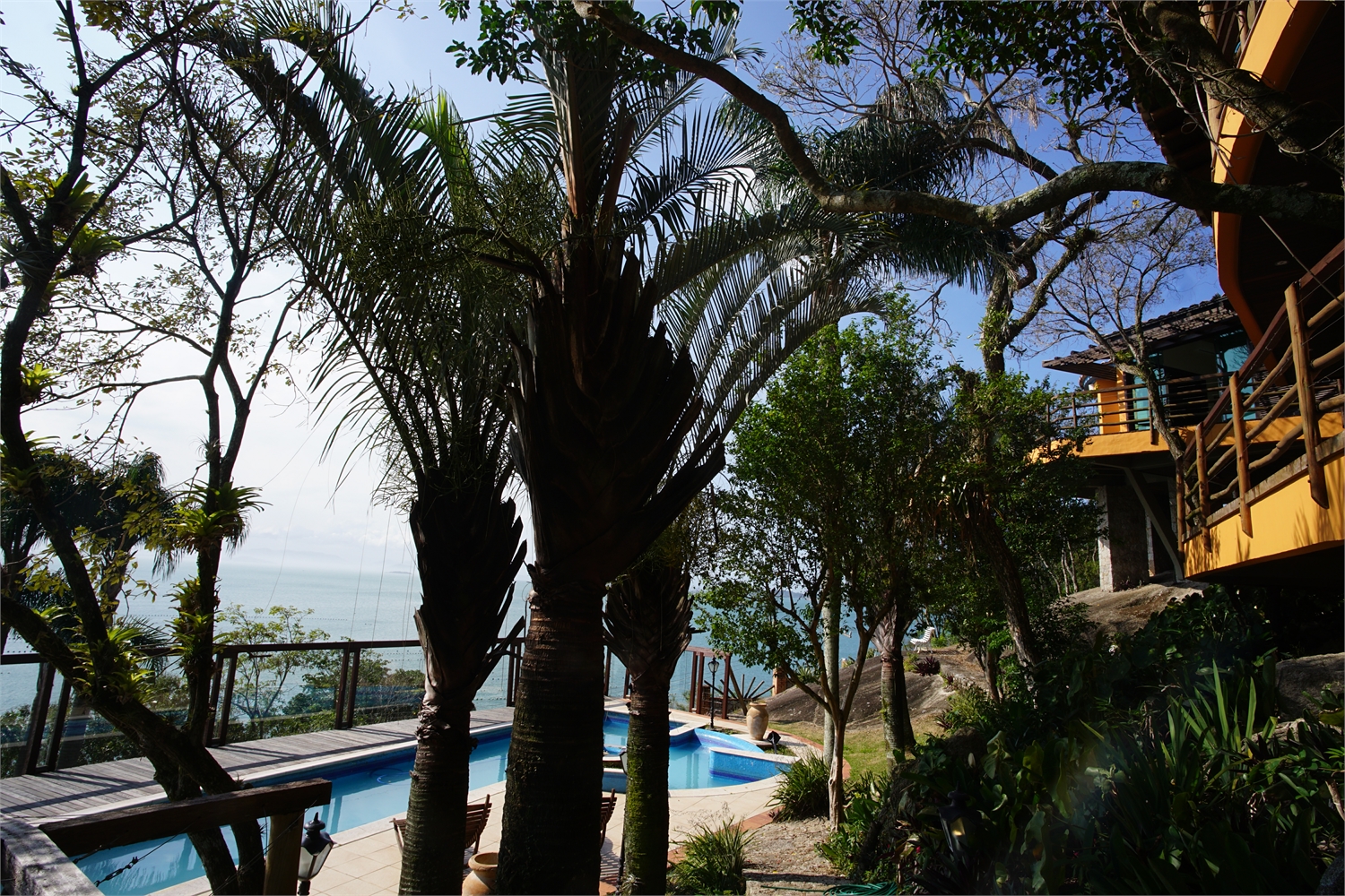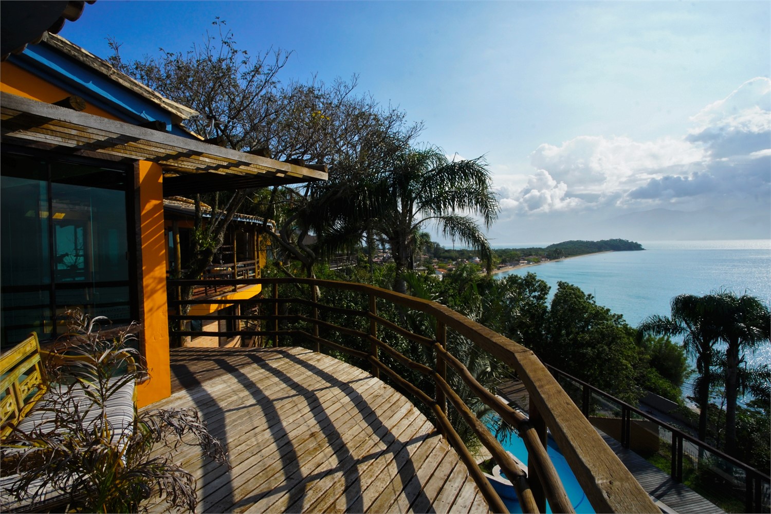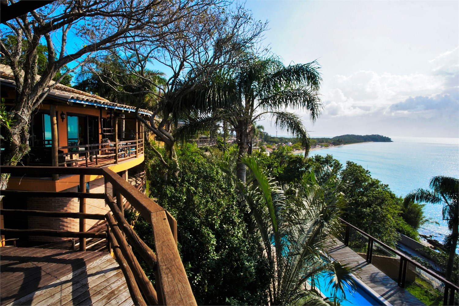 Com vista panorâmica do mar desde a área da piscina até o terceiro andar da casa.