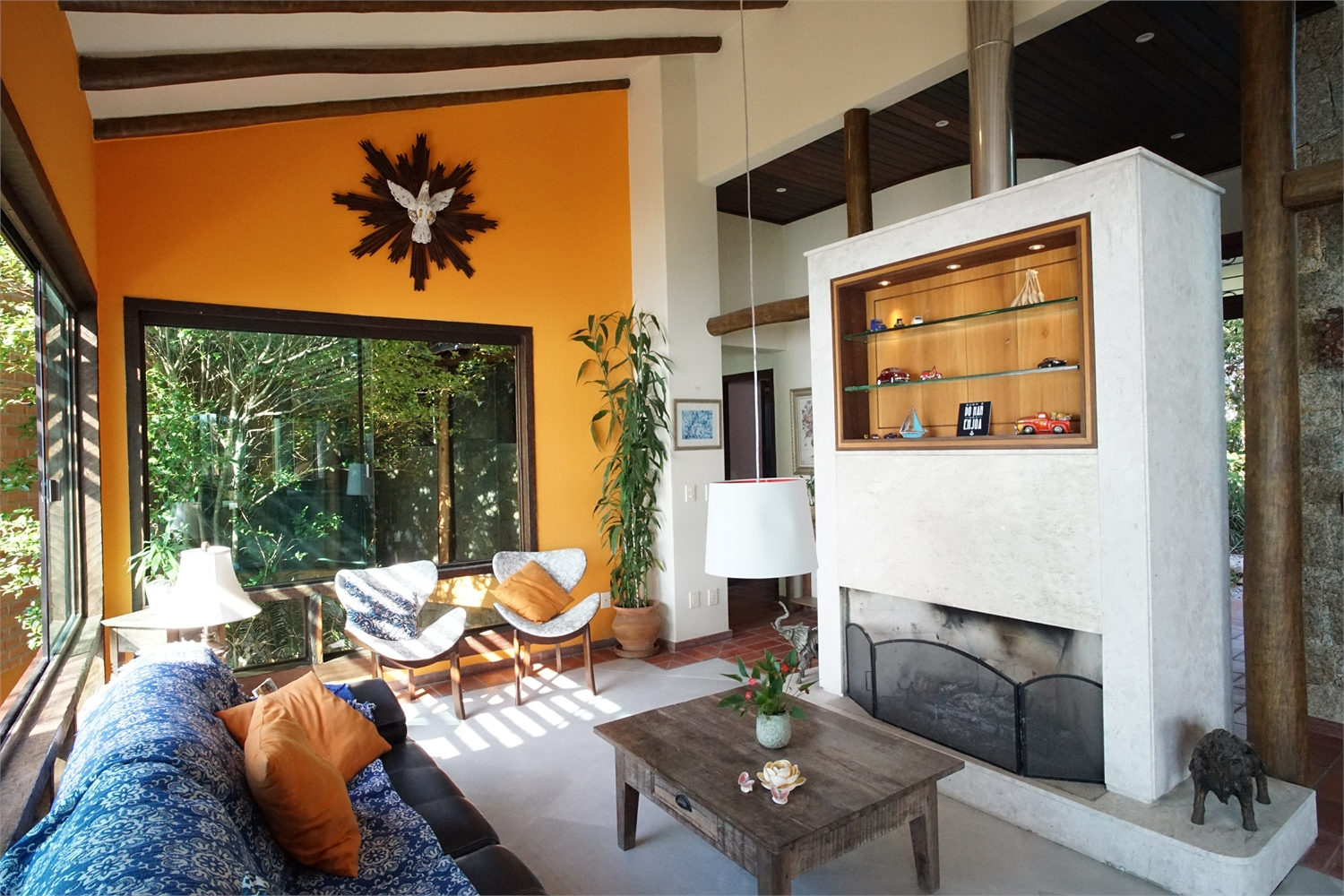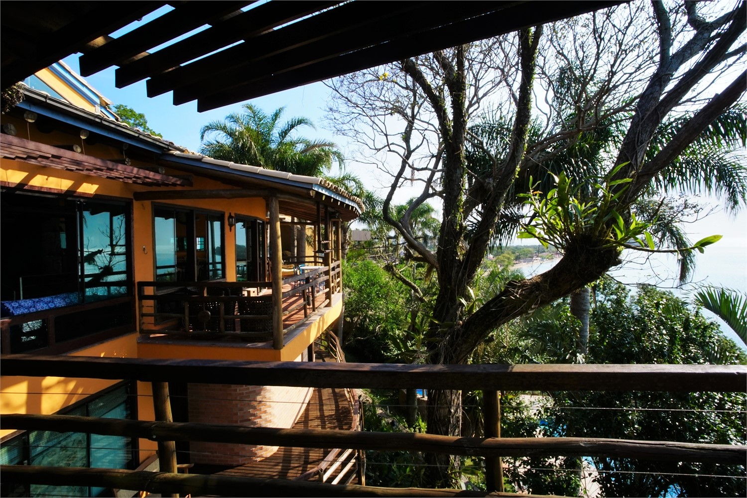 Andar superior: Espaçosa cozinha completa e equipada, sala de jantar com 8 lugares, sala de estar com lareira, Smart TV e wi-fi. Varanda com vista panorâmica do mar. Outras duas suítes com cama de casal e ar condicionado, sendo 1 suíte master com varanda privativa e vista para o mar.
