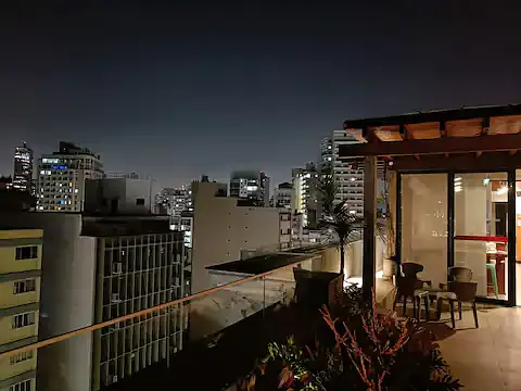 Check-in 8h e check-out 22h. Além do terraço, há opção de reservar um (ou +) quarto(s) extra(s) para