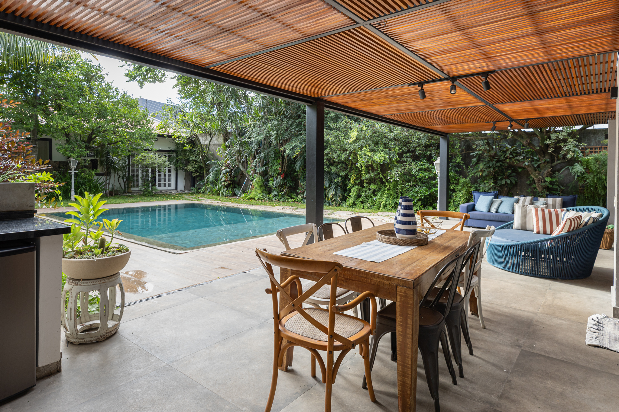 6. A diária inclui o uso das áreas comuns da casa (sala, cozinha, varanda, deck, piscina, garagem, lavabo). Os quartos e banheiros pertencentes não estão disponíveis para locação (mediante consulta e alteração de valor para o uso).